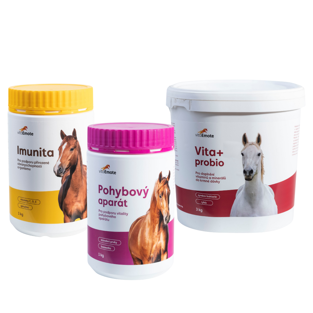 Podpořte zdraví a výkonnost svého koně s výhodnou sadou VitaEmote – Dospělí koně 2. Tato kombinace tří cílených doplňků přináší komplexní péči o imunitní systém, trávení i pohybový aparát.