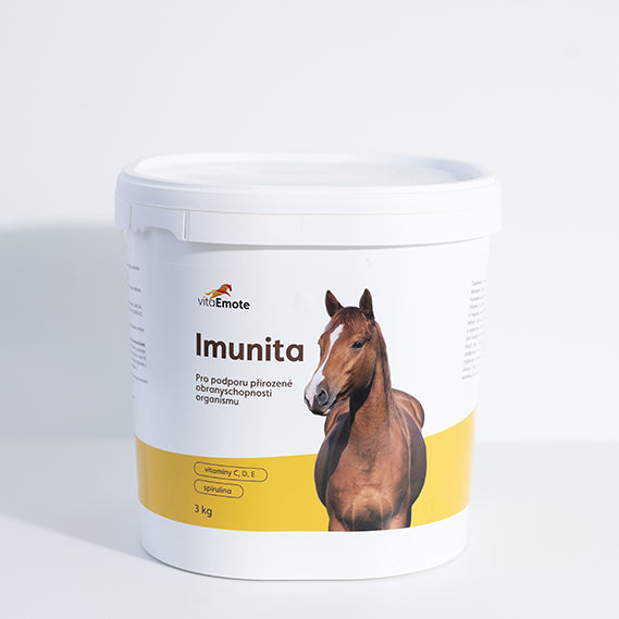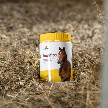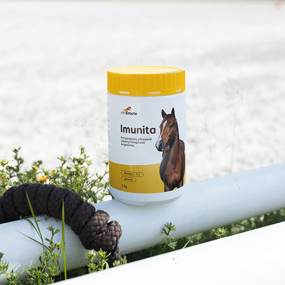 Doplňkové krmivo pro koně s vysokým obsahem vitamínu C, D, E, konopnými výlisky a spirulínou pro podporu přirozené obranyschopnosti organismu.